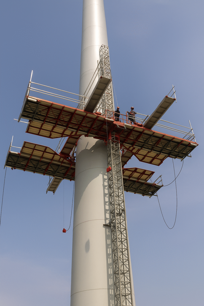 Climbing Mast With Platforms for Tall Structures